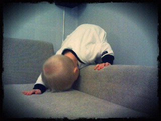 Gustav sprang mot Felix som satt på golvet. Sen gapskrattade både och Gustav sprang tillbaka till väggen och sen började han springa mot Felix igen och så höll de på hur länge som helst =)